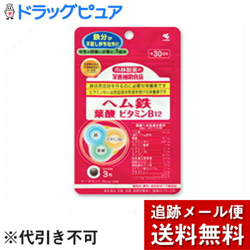 【本日楽天ポイント5倍相当 スーパーSALE開催中!】【メール便で送料無料 ※定形外発送の場合あり】小林製薬株式会社小林製薬の栄養補助食品 ヘム鉄・葉酸・ビタミンB12(90粒)