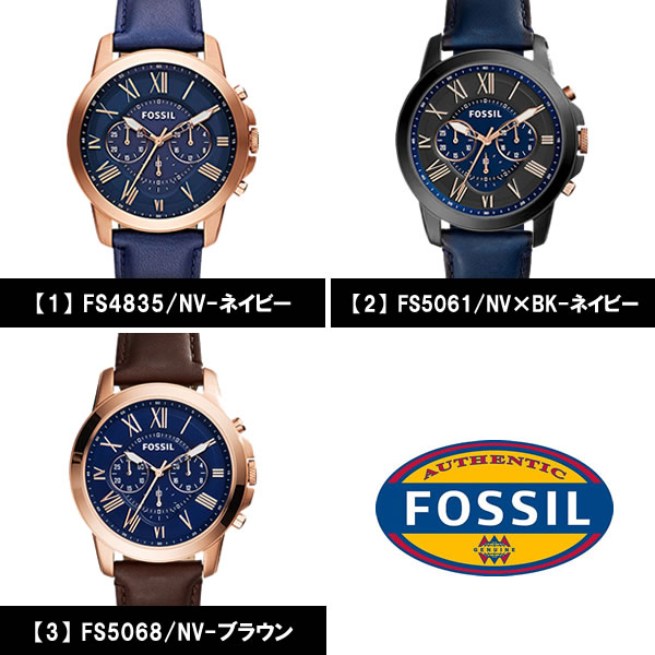 【1708】FOSSIL フォッシル レザーストラップとローマ数字が洗練された雰囲気を醸し出すGRANTコレクション。